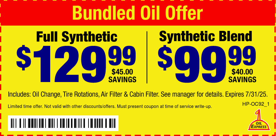 Good only at$129.99 Full Synthetic or Synthetic Blend $99.99