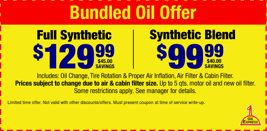 $129.99 Full Synthetic or Synthetic Blend $99.99